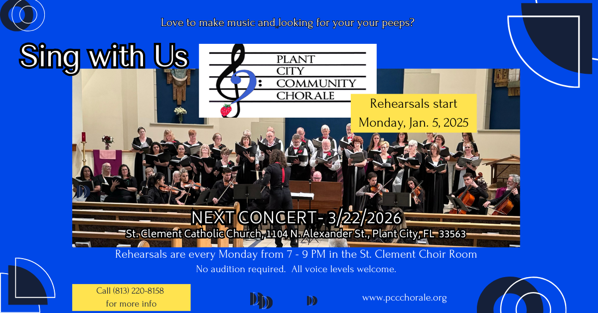 JOIN OUR FUN, TALENTED AND FRIENDLY ORGANIZATION AS A MEMBER!  PLEASE CALL (813) 220-8158 FOR MORE INFORMATION.